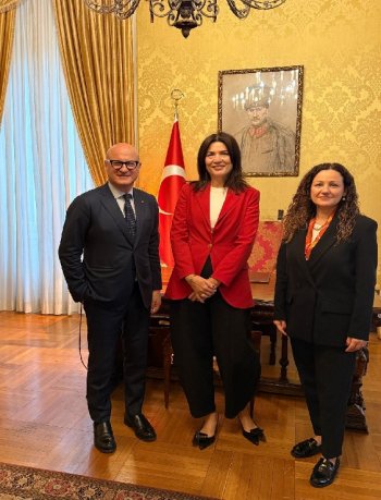 Türkiye-İtalya ticaretine İzmir köprüsüİzmir İtalyan Ticaret ve Sanayi Odası Yönetim Kurulu Başkanı Pietro Alba ve Genel Sekreter Eren Alpar, Roma'da Türkiye Cumhuriyeti'nin İtalya Büyükelçisi Elif Çomoğlu Ülgen'i makamında ziyaret etti. Ziyarette her iki ülke arasındaki ticari ilişkilerin geliştirilmesi ve gelecekteki işbirliği fırsatları konuşuldu.