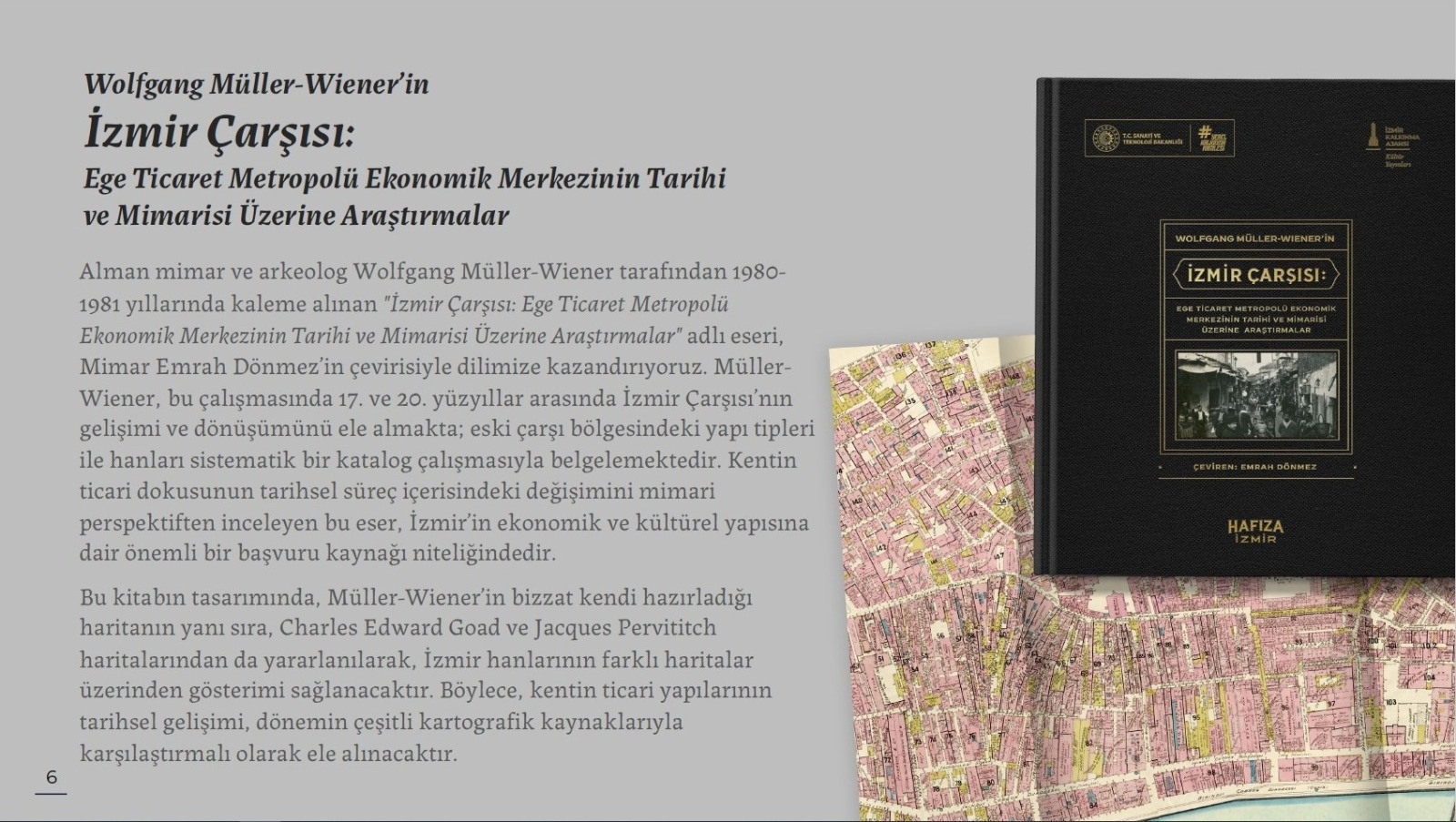 Müller-Wiener’in 1980–1981 yıllarında kaleme aldığı çalışma, 17. yüzyıl sonundan 20. yüzyılın sonuna uzanan geniş bir zaman diliminde Kemeraltı ve çevresindeki hanlar, çarşı dokusu ve ticari yaşamın dönüşümünü mimari bir perspektiften inceliyor. Eserde, kervan yollarından demiryoluna, rıhtım ve liman düzenlemelerinden elektrik ve haberleşme altyapısına uzanan teknik yeniliklerin İzmir kent dokusunu nasıl dönüştürdüğü sistematik bir katalog ve zengin görsel malzeme eşliğinde ortaya konuluyor.