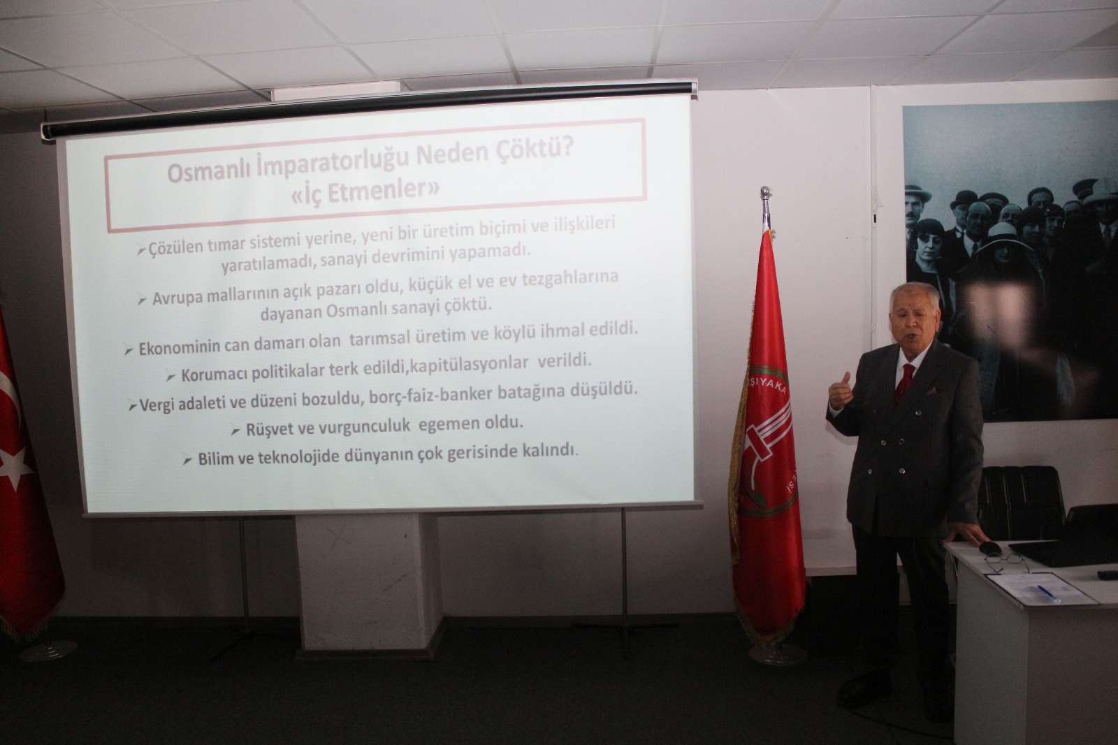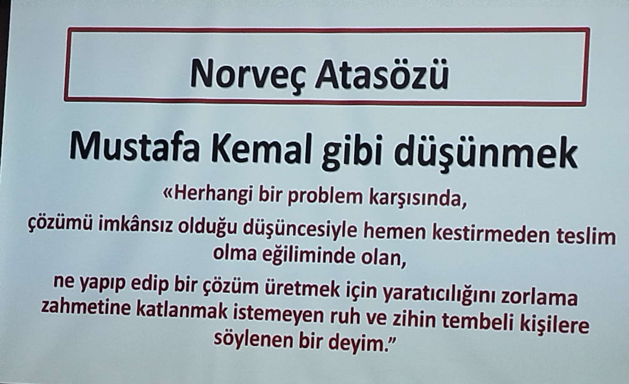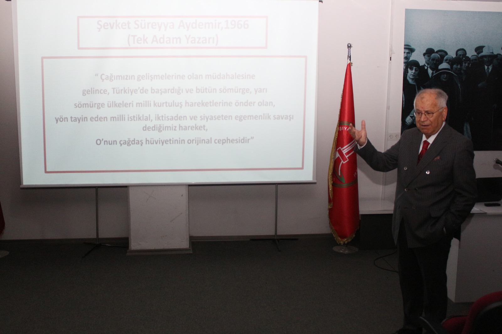Kalabalık bir dinleyici kitlesinin katıldığı toplantıda, Kaymakçı söyleşisinin başında “Batı emperyalizmi tarafından sömürülmüş/sömürülmekte olan Asya ve Afrika Halkları, Atatürk’ün Batı emperyalizmine karşı kazanmış olduğu siyasi ve sosyal zaferler ile kurulmuş olan Cumhuriyetini kendilerine örnek almışlardır”. dedi