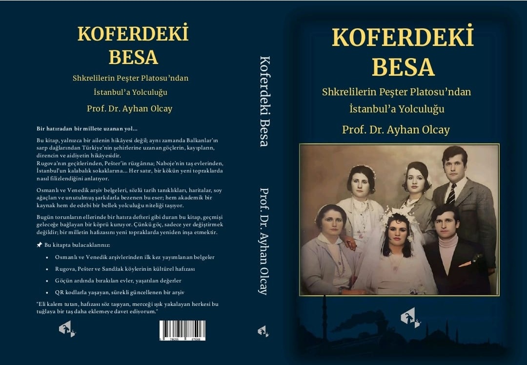 Koferdeki Besa – Shkrelilerin Peşter Platosu’ndan İstanbul’a Yolculuğuİstanbul, 2025 — Balkan dağlarından İstanbul’a uzanan bir yolculuğun hikâyesi artık kitapçıların raflarında yerini aldı. Prof. Dr. Ayhan Olcay’ın kaleme aldığı, Papirus yayınlarından çıkan “Koferdeki Besa – Shkrelilerin Pešter Platosu’ndan İstanbul’a Yolculuğu”, yalnızca bir ailenin geçmişini değil, bir halkın ve bir belleğin yeniden inşasını anlatıyor.