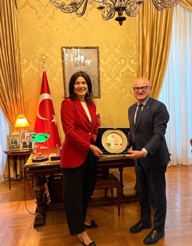 Türkiye-İtalya ticaretine İzmir köprüsüİzmir İtalyan Ticaret ve Sanayi Odası Yönetim Kurulu Başkanı Pietro Alba ve Genel Sekreter Eren Alpar, Roma'da Türkiye Cumhuriyeti'nin İtalya Büyükelçisi Elif Çomoğlu Ülgen'i makamında ziyaret etti. Ziyarette her iki ülke arasındaki ticari ilişkilerin geliştirilmesi ve gelecekteki işbirliği fırsatları konuşuldu.