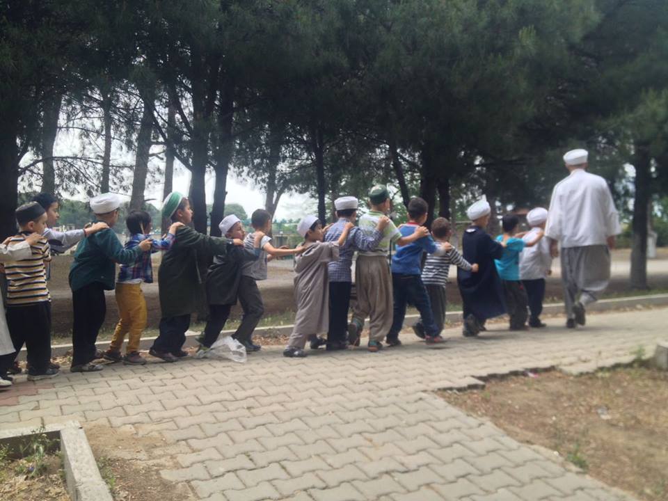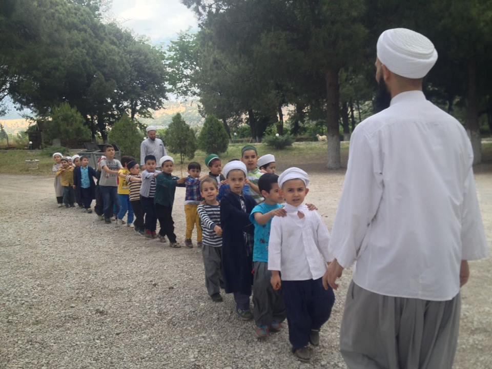 ![]() Bozyaka Hizmet Sıbyan Kursu öğrencileri Emiralem mesire alanında... Okul öncesi çocuklarına sarık, şalvar, cübbe giydiriliyor... Okul öncesi çocuklar cemaat bünyesinde şeriat eğitimi aldıkları kurslarda zaman zaman pikniğe götürülüyorlar... ![]() UMRE YOLCULUĞU Çocuklar umreye giden cemaat üyelerini uğurluyorlar...