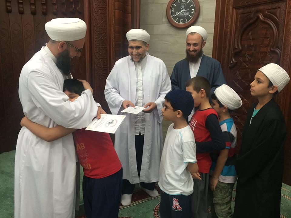 ![]() 2016'NIN "MEZUNİYET" TÖRENİ Cemaatin Bozyaka Hizmet Sıbyan Kursu'ndan mezun olan çocuklara geçen yıl "mezuniyet" töreni düzenlenmişti. Törende çocuklar şeyhlerine sarılarak, hocalarının elini öperek "karne"lerini almışlardı.