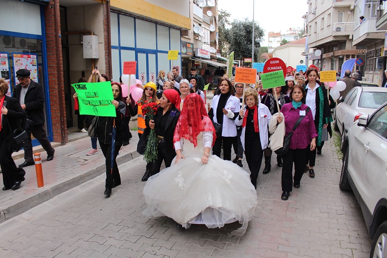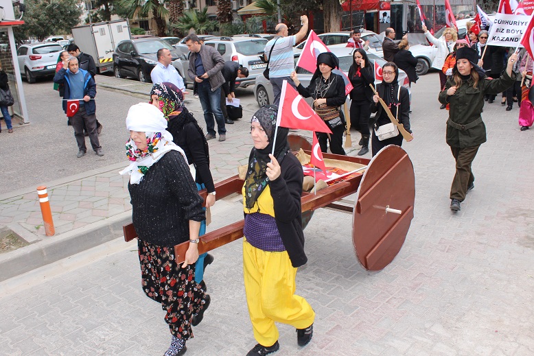 Etkinlik katılımcıların “Zübeyde Annenin” mezarına karanfiller koymasıyla başladı… Daha sonra kadınlar kortej halinde “Farkındalık Yürüyüşü” gerçekleştirildi… Zübeyde Hanım Anıt Mezarından başlayan görkemli yürüyüş, bayanların step ve zeybek gösterileri ile sona erdi… CHP İlçe Başkanı Uğur Yıldırım’ın Açıklaması CHP Karşıyaka İlçe Başkanı Uğur Yıldırım’ın günün anısına yaptığı açıklama: “8 Mart Dünya Emekçi Kadınlar Gününü; kadınlarımızın yaşadığı çok ağır koşullarda ve Cumhuriyeti dönüştürmeyi amaçlayan bir iktidarın mevcudiyetinde kutlama günü olarak değil, bilinç ve güç tazeleme günü olarak değerlendiriyoruz. Kadınlarımızın içinde yaşadıkları sorunlar, toplumun yalnızca bir kesiminin ya da belli bir cinsiyet grubunun değil, hepimizin sorunlarıdır ve hepimizi ilgilendirmek durumundadır. Biz, Gazi Mustafa Kemal Atatürk’ün önderliğinde, kadınıyla erkeğiyle kurtuluş mücadelesini vermiş, işe önce kadınlar ve çocuklar diyerek başlayan yepyeni bir ülke kurup, adını “Türkiye Cumhuriyeti” demiş bir halkın çocuklarıyız. Yüz yılların ihmaline, aymazlığına, cehaletine ve yobazlığına terk edilmiş olan kadınlarımız, Cumhuriyet sayesinde yozluğun ve yobazlığın elinden kurtulmuş, ülkemizin büyük yolculuğundaki yerini almıştır. Bugün bu yolculuktan bize tarihin çöplüğüne attığımız bir rejimi ve sistemi dayatmak isteyenlere karşı, kadınlarımızın yükselteceği hayır itirazı, bizi geçmişin ve geleceğin gözünde, onurlu bir yere taşıyacaktır Onların kılık kıyafetleri üstünden siyasi malzeme devşirirken, kadınlarımızı tekrar ikinci üçüncü sınıf insanlara dönüştürme ikiyüzlülüğü içinde olanları biliyor ve görüyoruz. Töre, inanç, gelenek maskesi altında, her türlü sömürüyü, ötekileştirmeyi, yoksul ve yoksun bırakmayı dayatanların ağzından, kadınlara yönelik şiddete, aşağılamaya, tecavüze, sekiz dokuz yaşındaki kızlarımızın “çocuk gelin” rezaletleriyle kaybolup gitmelerine neden tek kelime çıkmadığını en iyi bilenler, herkesten önce kadınlarımızdır. Kadınlarımız, bu kötü ve karanlık oyunu bozacaktır. Biz ülkemizin ve insanlığın gelecek güzel günler için, esin ve cesaretimizi onlardan alıyoruz. Kadınların kurtuluşu, ülkelerin kurtuluşu ise, bugün kadınıyla erkeğiyle omuz omuza vermenin tam sırasıdır. Bu karanlık kabus mutlaka bitecek, Türkiye Cumhuriyeti demokratik, laik, çağdaş ve sosyal hukuk devleti olarak tanımlanan değerlerine, mutlaka yeniden kavuşacaktır. Bu uğurda bedel ödemiş kadınlarımızı saygıyla anıyor, onların izinden hiç bıkmadan yürüyeceğimize söz veriyoruz. Bu duygu, düşünce ve kararlılıkla, “8 Mart Dünya Emekçi Kadınlar Gününde” emeğiyle, onuruyla, özverisiyle yaşamımızı güzelleştiren kadınlarımızı selamlıyoruz. ![]() ![]() ![]() ![]() Haber Kaynağı: ESH- Doğan Prepol