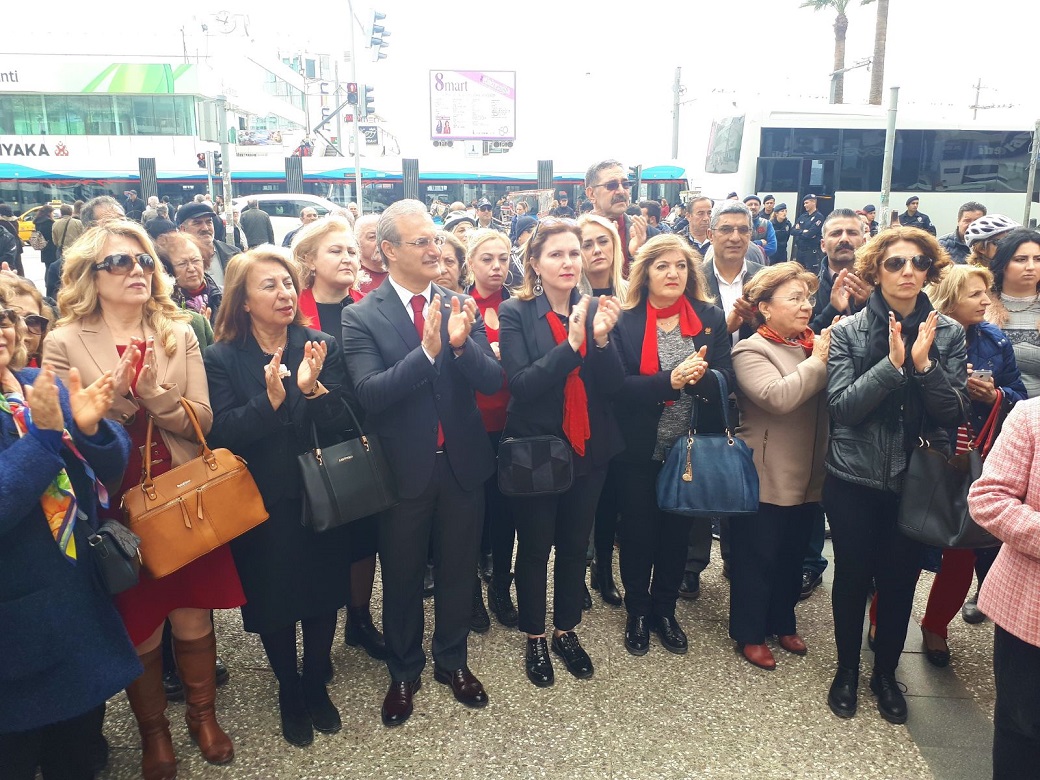 CHP Karşıyaka Kadın Kolları’nın öncülüğünde düzenlenen “8 Mart Dünya Emekçi Kadınlar Günü” etkinliği muhteşem görüntülere sahne oldu… Gazi Mustafa Kemal Atatürk’ün Karşıyakalılara büyük emaneti Zübeyde Annenin Anıt Mezarında başlayan etkinliğe, “CHP Karşıyaka İlçe Başkanı Uğur Yıldırım, yönetim kurulu, CHP İl Kadın Kolları Başkanı ve Yönetim kurulu, Belediye Meclis Üyeleri, Karşıyaka Atatürkçü Düşünce Derneği, Türk Kadınlar Birliği, Kadın Gücü Derneği, Cumhuriyet Kadınları Derneği, Karşıyaka Kent Konseyi Kadın Meclisi, Türkiye Emekli Subaylar Derneği, İzmir Bisikletli Kadınlar ve UCİM” katıldı…