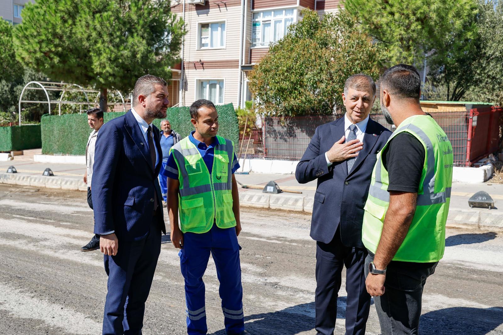 Yavuz Sultan Selim Caddesi’nin ardından Başkan Tugay, İZBETON ekiplerinin asfalt çalışmalarına başladığı Dede Korkut Caddesi’ne geçerek çalışmalar hakkında bilgi aldı. Bin 700 metre uzunluğunda, 8 metre genişliğindeki caddede 4 bin 243 ton asfalt serimi yapacak.
