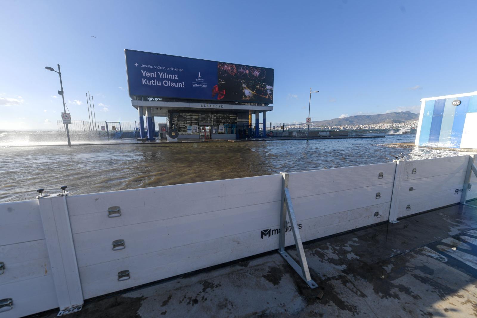 Fırtına duvarı Kordon’u böyle koruduİzmir’de etkili olan yağmurun ardından öğleden sonra şiddetli fırtına ile birlikte deniz seviyesi yükseldi. Saat 16.00’dan itibaren körfezin suları karaya doğru ilerledi. Bu noktada İzmir Büyükşehir Belediyesi’nin inşa ettiği fırtına duvarı deniz sularının önünü keserek 1. Kordon’u olası bir baskından korudu. Duvarın denize bakan kısmı suyla kaplanırken, kara tarafında ise yaşam olağan akışıyla devam etti.