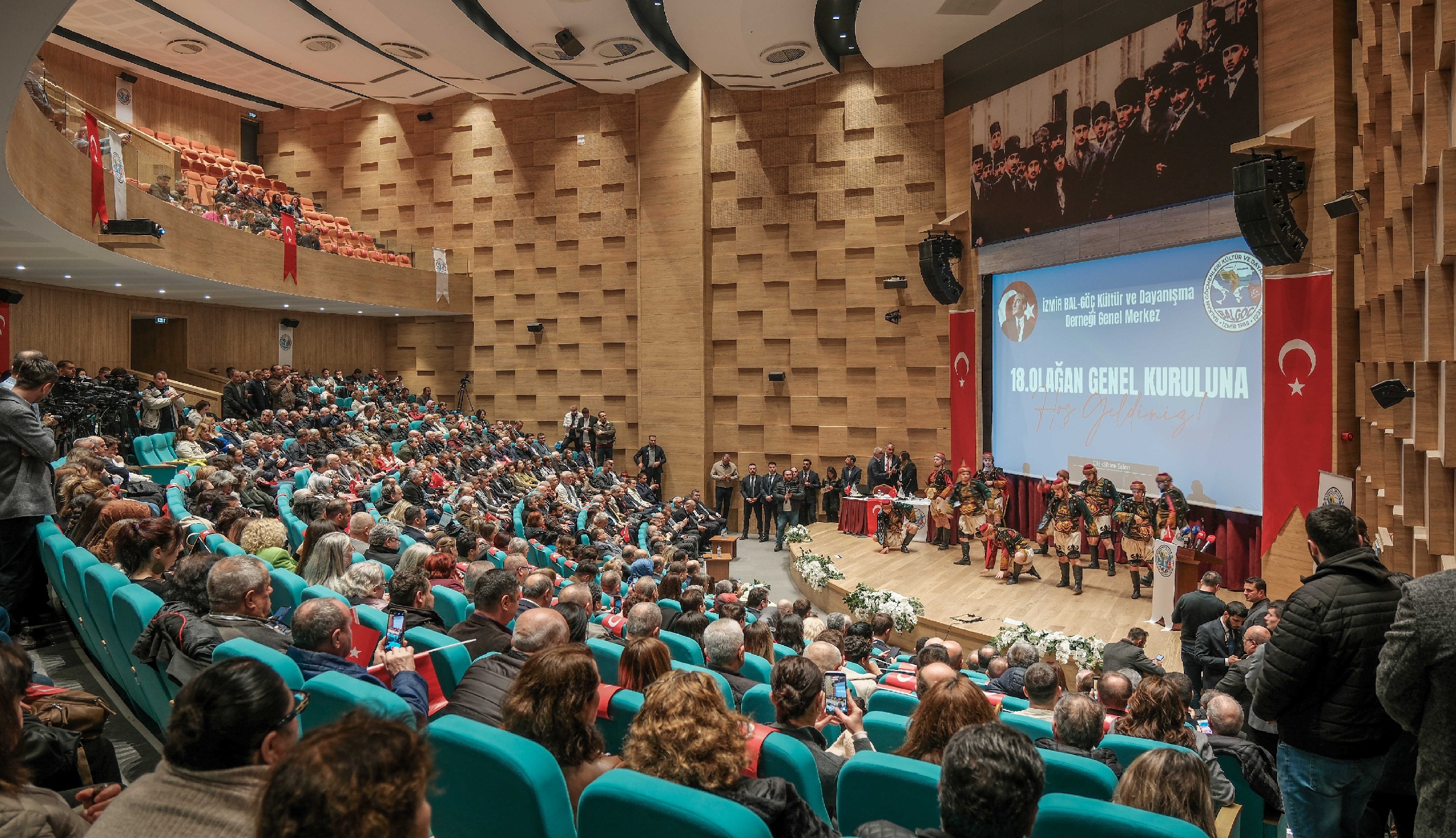 İzmir İktisat Kongre Merkezi’nde gerçekleştirilen 18. Olağan Genel Kurul’a katılımın yoğunluğu dikkat çekti. Genel kurul öncesinde katılımcılar, Gaziemir Üçetek Kültür Sanat Derneği Zeybek Ekibi’nin gösterisiyle karşılandı. Genel kurulda Abdurrahim Nursoy başkanlığındaki yönetim 2026–2028 dönemi için yeniden görevlendirildi.
