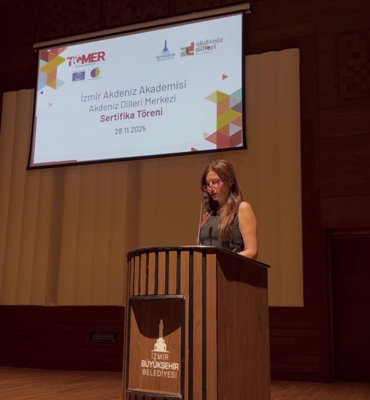 İZMİR TÖMER’DE “AKDENİZ ESİNTİSİ”İzmir Büyükşehir Belediyesi ile Ankara Üniversitesi iş birliğiyle yürütülen Akdeniz Dilleri Projesi, Dünya Akdeniz Günü’nde düzenlenen törenle bir kez daha meyvelerini verdi. Proje kapsamında eğitimlerini tamamlayan kursiyerler, sertifikalarına kavuşmanın heyecanını yaşadı.