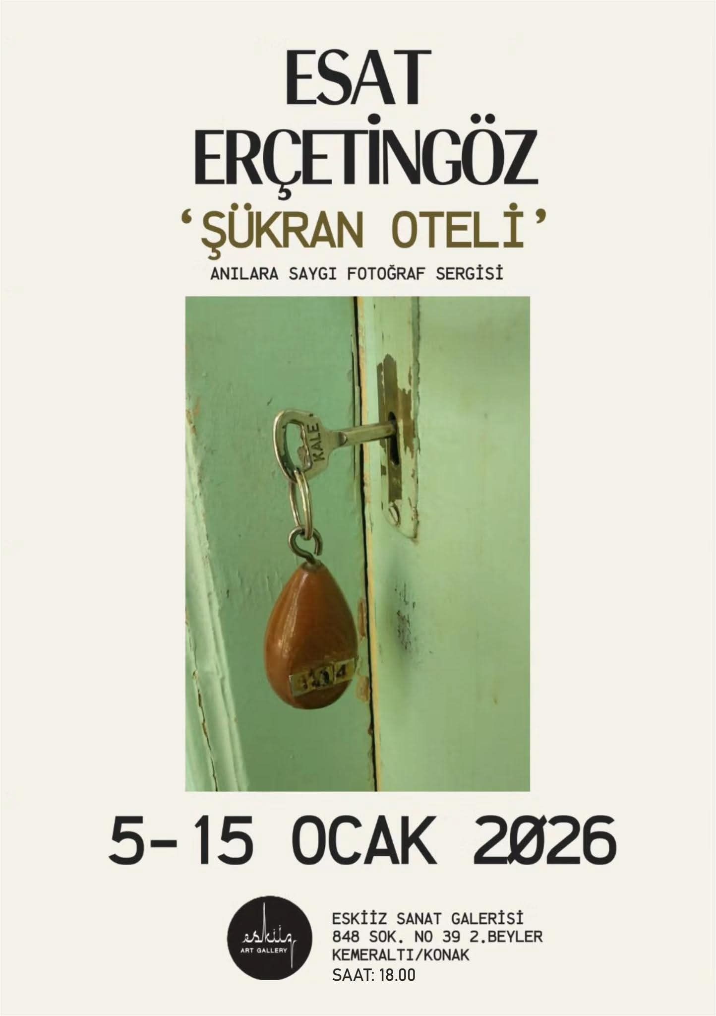ESAT ERÇETİNGÖZ'ÜN 55. SERGİSİ..Usta Gazeteci Esat Erçetingöz, Tarihi Kemeraltı Çarşısı'nın simge mekânlarından Şükran Oteli'nin kapandığı gün çektiği fotoğraflarla 55.sergisini, Eskiz Sanat Galeri'sinde açtı.