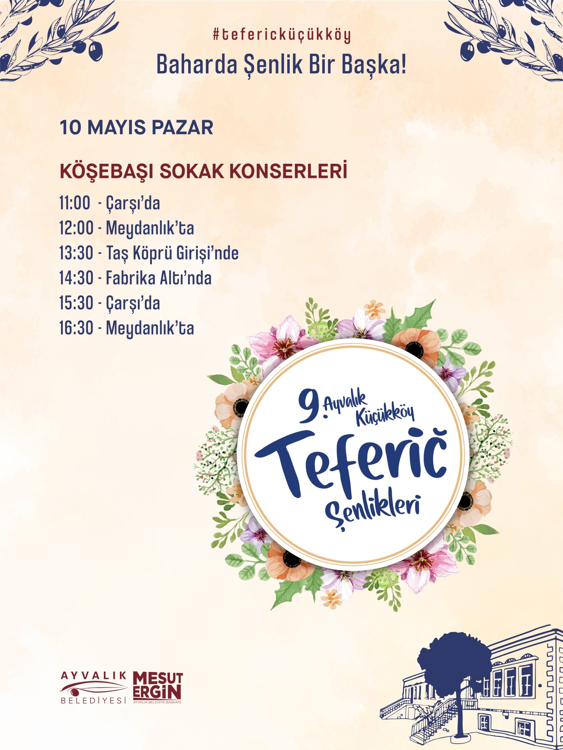AYVALIK’TA BAHAR COŞKUSU: TEFERİÇ ŞENLİKLERİ BAŞLIYORAyvalık’ın kültürel mirasında önemli bir yere sahip olan Küçükköy Teferiç Şenlikleri, bu yıl da dopdolu programıyla dokuzuncu kez baharın coşkusunu yaşatmaya hazırlanıyor. “Baharda şenlik bir başka!” mottosuyla düzenlenecek etkinlikler, 8-10 Mayıs tarihleri arasında üç gün boyunca ziyaretçilere müzik, dans ve kültür dolu anlar sunacak.