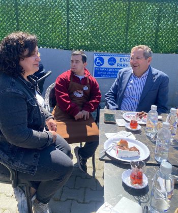 Ayvalık Belediye Başkanı Mesut Ergin’in öğle arasında gerçekleştirdiği bu içten sürpriz, sadece Ali Baran’ı değil, kafede bulunan herkesi duygulandırdı. Ne diyeceğini bilemeyen Ali Baran, mutluluğunu Başkan Ergin’e sarılarak dile getirdi. Yüzündeki o saf ve samimi gülümseme, mekândaki herkesin yüreğine dokundu; adeta bir anlığına zaman durdu, yerini sevgi ve paylaşım aldı.